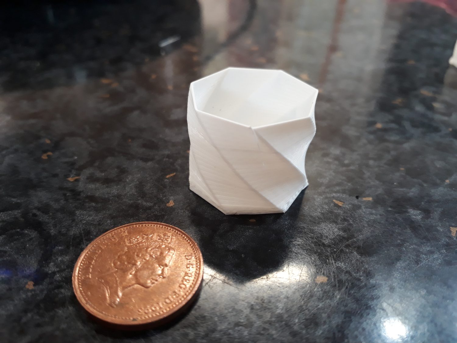Previous ImageNext Image 20170725_141745 Tried a small one in vase mode (spiralise – Cura). Seemed OK.